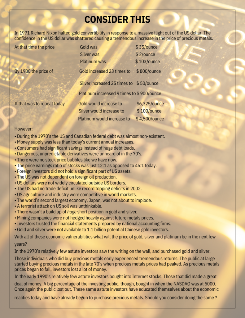 Canadians now have the opportunity to include physical gold and silver in their retirement investment portfolios through our collaboration with Questrade and PMI. This partnership enables eligible accounts such as RRSPs, TFSAs, LIFs, RRIFs, and LIRAs to invest in precious metals. Thus, investors can diversify their portfolios and hold tangible assets in their registered savings accounts.